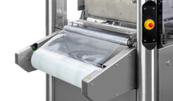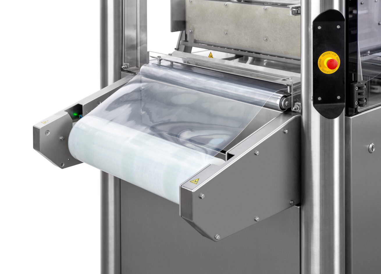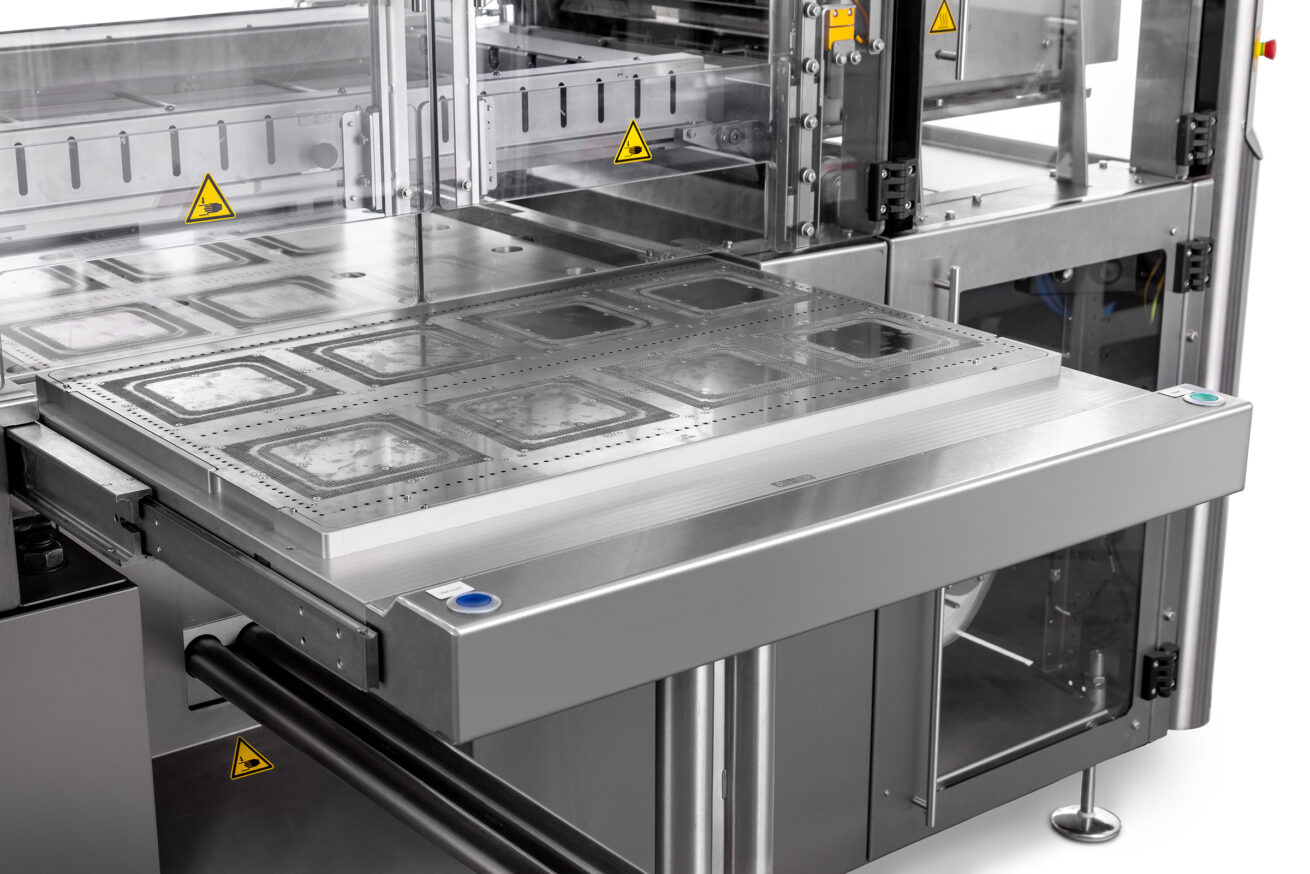- Vacuümladesysteem – Een door een stappenmotor aangedreven lade met verwisselbare vacuümplaten zorgt voor een perfecte product positionering en een veilige bevestiging van Tyvek vóór het sealen.
