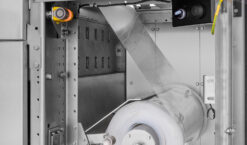 De Skinpacker integreert geavanceerde mechanica en automatisering voor een naadloos verpakkingsproces: