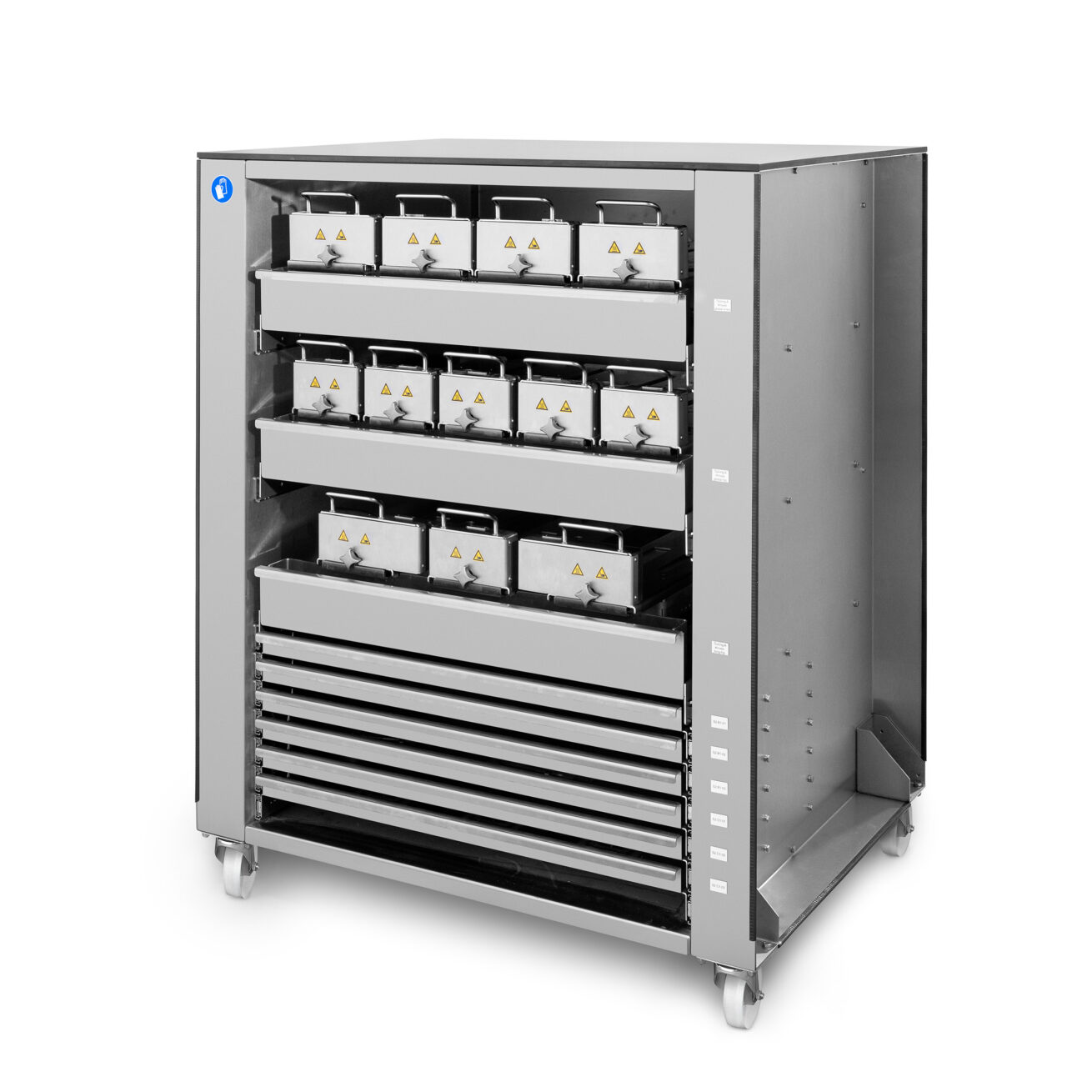 Elke stap van het proces wordt beveiligd door vergrendelbare deuren, pneumatische veiligheidssystemen en foutbewaking voor maximale bescherming van de operator.